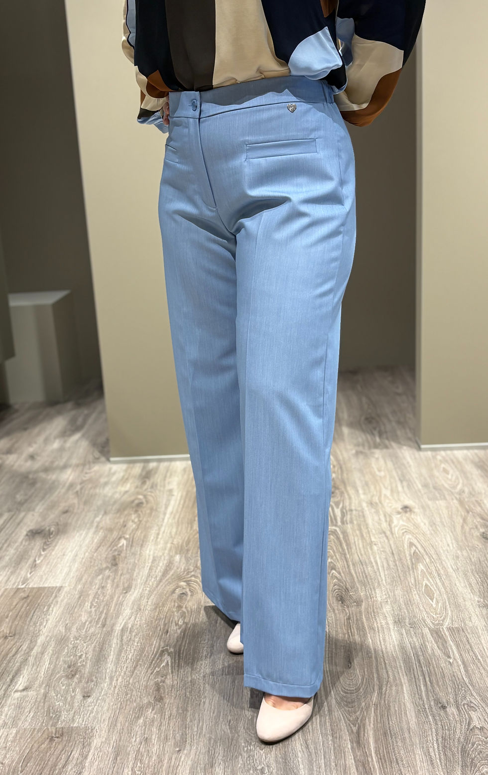 Geklede broek met plooi in lichte stretchstof – licht- en donkerblauw